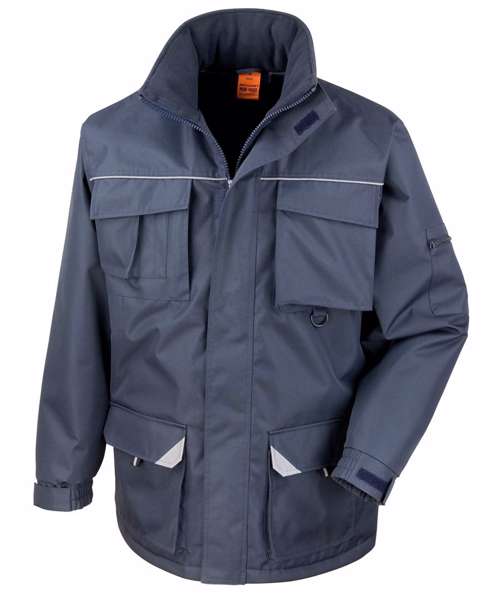 Full front heavy duty zip. Fully taped seams. Tear release storm flap. Concealed hood with adjustable drawcord. Deep front patch pockets, with soft feel microfleece hand warmer packet access. Semi detachable left chest pocket with tear release/stud and zip closure for access or decoration. Multi-feature right chest pocket. Inside chest pocket. Reflective detail across chest and pockets. Elasticated cuff with tear release adjuster. Diamond quilted lining. Interchangeable colour zip pull system. Hanging loop. Soft feel microfleece lined stand-up collar. D Ring. Critical seam twin needling.Decoration Guidelines:Decorating methods: Embroidery & Transfer print. Decorators access point: Outer left chest & Inside lower back.