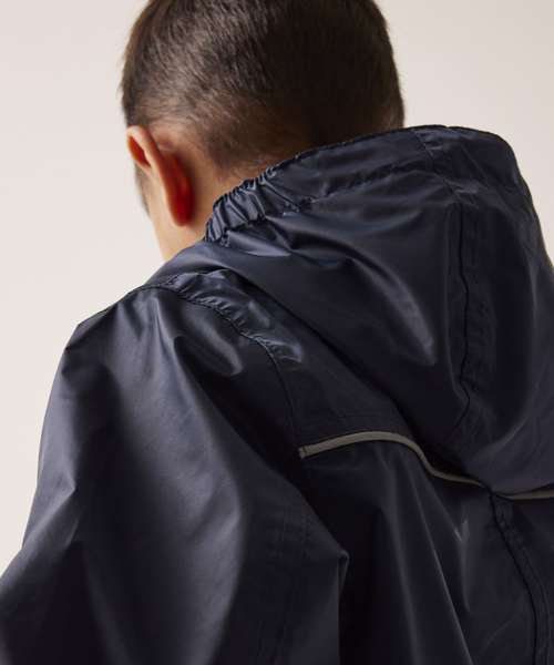 Waterproof and breathable Isolite lightweight polyester fabric. Windproof fabric. Taped seams. Integral hood. Reflective trim to front and back. Part-elasticated waist. Elasticated cuffs and hem.