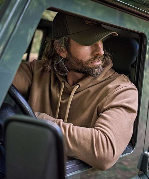 Three-thread fabric. Brushed inside. Ribs with elastane. Double dyed. Double stitched. Double pre-shrunk. Washable at 60˚C.